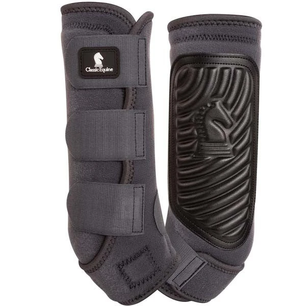 These Classic Equine ClassicFit splint boots have a sleek, modern fit that allows unrestricted and natural leg function with protection and support. The suspensory sling is uniquely positioned for correct angle alignment to ensure lower limb support. The tough outer pad provides extra strike protection while the laminated jersey lining is comfortable and will not fold, bunch or rub.