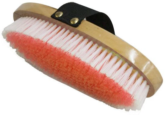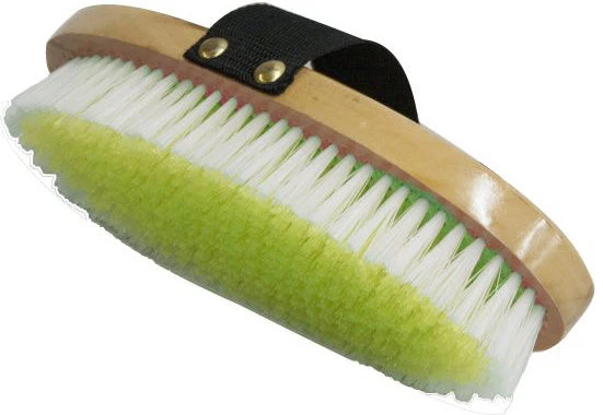 - Soft bristles on an oval base with hand strap.
