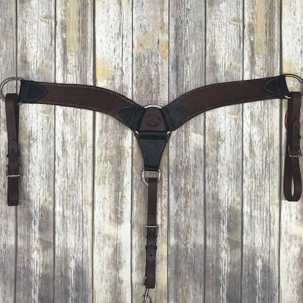 This oiled breast collar features a running w tooled border. The oiled finish will help keep it protected while keeping the leather soft.