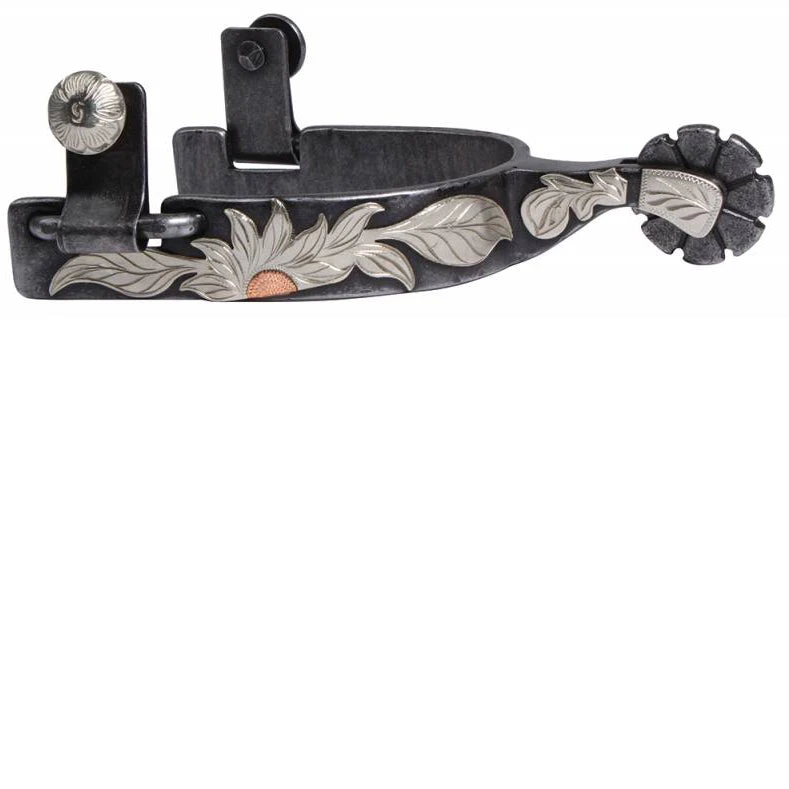 These Professional’s Choice Beautiful handcrafted spurs with a sunflower design on the 3/4″ band, with a blunt 8 point rowel are classic and functional.