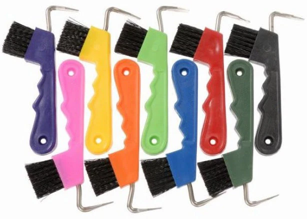Super stiff nylon bristles with tempered steel hoof pick and easy grip heavy polymar handle. 7 3/8” long.