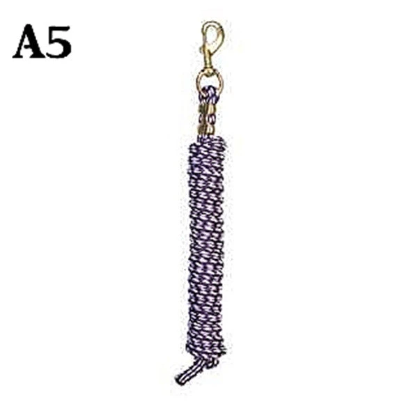 This is a great lead for around the barn. It is constructed of polypropylene material which is soft on the hands and extra durable. Choose from and array of colors.